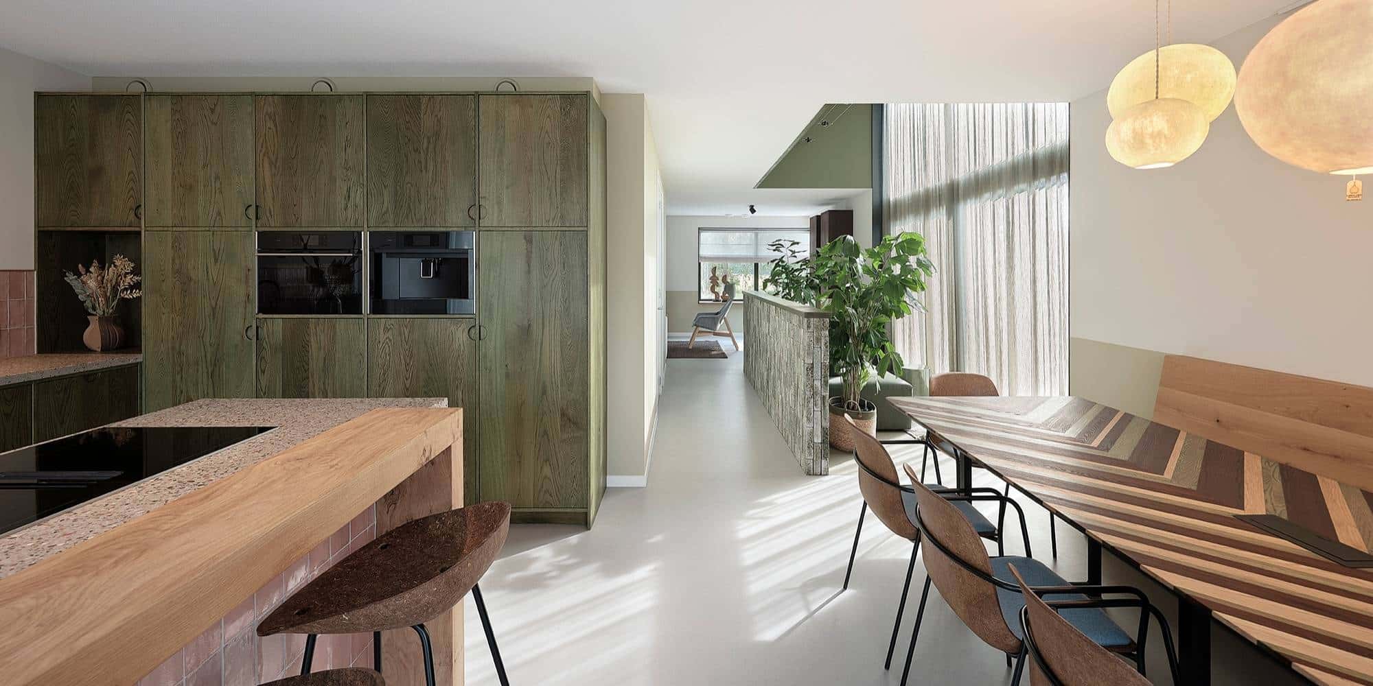 We laten zien hoe indeling, kleur, verlichting en vaste elementen in meerdere ruimtes doorlopen, zodat jouw woning één geheel vormt. - Alles onder één dak